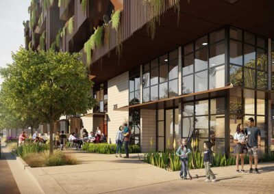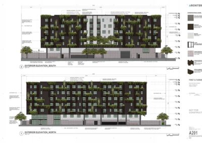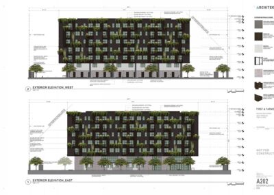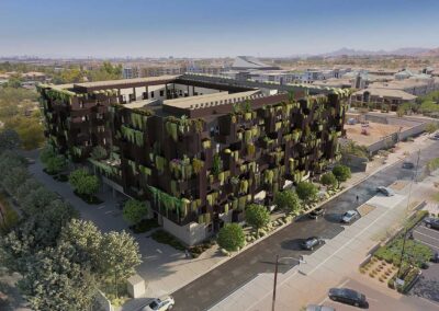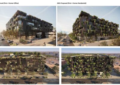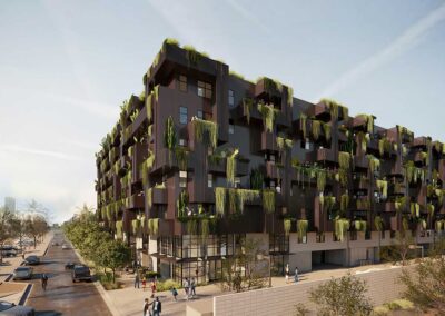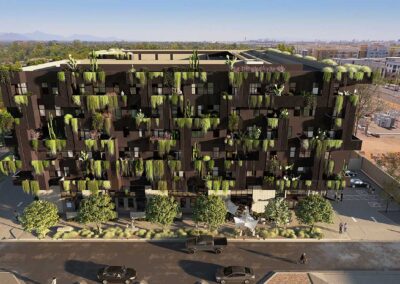 First + Farmer Residential is a sustainable mixed-use development with approximately 200 residential units, including 20 low-income housing units, with ancillary ground floor commercial in an iconic, 7-story biophilic design building.
